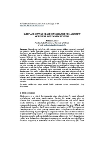 Lukács, Andrea (2025) Sleep and Mental Health in Adolescents: A Review of Recent Systematic Reviews. EGÉSZSÉGTUDOMÁNYI KÖZLEMÉNYEK, 15 (2). pp. 25-30. ISSN 2063-2142