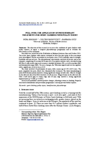Bognár, Nóra and Bádovszky, Zoltán and Guzi, Barbara (2025) Pull-Over: The Application of Physiotherapy Treatments for Sport Climbers with Pulley Injury. EGÉSZSÉGTUDOMÁNYI KÖZLEMÉNYEK, 15 (2). pp. 13-24. ISSN 2063-2142