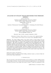 Páczelt, István and Mróz, Zenon and Baksa, Attila (2015) Analysis of steady wear processes for periodic sliding. JOURNAL OF COMPUTATIONAL AND APPLIED MECHANICS, 10 (2). pp. 231-268. ISSN 1586-2070