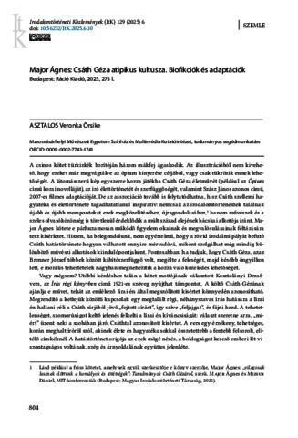 Asztalos, Veronka Örsike (2025) Major Ágnes: Csáth Géza atipikus kultusza. Biofikciók és adaptációk. IRODALOMTÖRTÉNETI KÖZLEMÉNYEK, 129 (6). pp. 804-809. ISSN 0021-1486