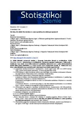 Kőműves, Zsolt Sándor and Pálmai, László and Szécsi, Gabriella (2025) Két világ, két attitűd: klaszterelemzés a nemi egyenlőség társadalmi percepciójáról = Two worlds, two attitudes: cluster analysis of social perceptions of gender equality. STATISZTIKAI SZEMLE, 103 (12). pp. 1172-1190. ISSN 0039-0690