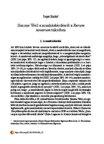 Sepsi, Enikő (2023) Simone Weil a munkáskérdésről a Rerum novarum tükrében. In: Rerum Novarum 130. Ludovika Egyetemi Kiadó, Budapest, pp. 167-177. ISBN 9786156598912; 9786156598929; 9786156598936