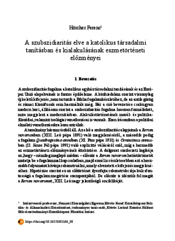 Hörcher, Ferenc (2023) A szubszidiaritás elve a katolikus társadalmi tanításban és kialakulásának eszmetörténeti előzményei. In: Rerum Novarum 130. Ludovika Egyetemi Kiadó, Budapest, pp. 117-134. ISBN 9786156598912; 9786156598929; 9786156598936