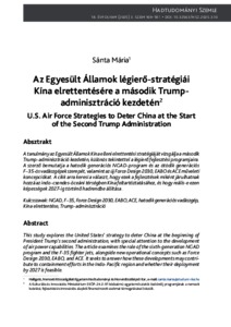 Az Egyesült Államok légierő-stratégiái Kína elrettentésére a második Trump-adminisztráció kezdetén = U.S. Air Force Strategies to Deter China at the Start of the Second Trump Administration