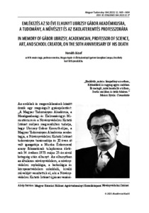 Horváth, József (2023) Emlékezés az 50 éve elhunyt Ubrizsy Gábor akadémikusra, a tudomány, a művészet és az iskolateremtés professzorára. MAGYAR TUDOMÁNY, 184 (12). pp. 1601-1604. ISSN 0025-0325