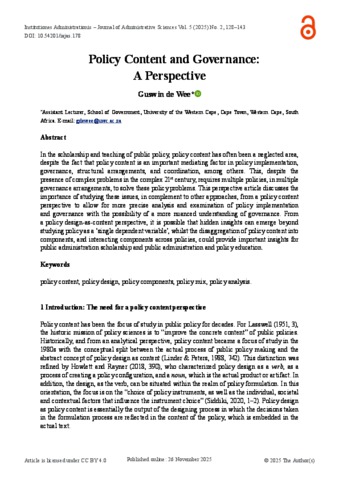 De Wee, Guswin (2025) Policy Content and Governance: A Perspective. INSTITUTIONES ADMINISTRATIONIS - JOURNAL OF ADMINISTRATIVE SCIENCES, 5 (2). pp. 128-143. ISSN 2786-1929
