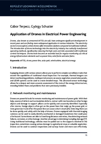 Terpecz, Gábor and Schuster, György (2024) Application of Drones in Electrical Power Engineering. REPÜLÉSTUDOMÁNYI KÖZLEMÉNYEK (1997-TŐL), 36 (2). pp. 73-85. ISSN 1417-0604