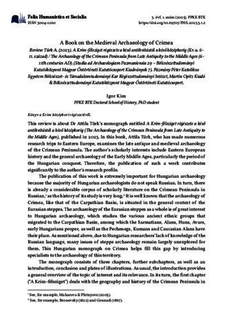 Kim, Igor (2025) A Book on the Medieval Archaeology of Crimea [Könyv a Krím középkori régészetéről]. FOLIA HUMANISTICA ET SOCIALIA, 3 (1). pp. 9-14. ISSN 3004-1260