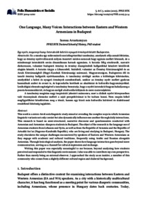 Arustamyan, Inessa (2025) One Language, Many Voices : Interactions between Eastern and Western Armenians in Budapest = Egy nyelv, megannyi hang: Interakciók keleti és nyugati örmények között Budapesten. FOLIA HUMANISTICA ET SOCIALIA, 3 (1). pp. 29-45. ISSN 3004-1260