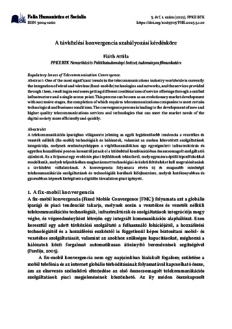 Attila, Fiáth (2025) A távközlési konvergencia szabályozási kérdésköre = Regulatory Issues of Telecommunication Convergence. FOLIA HUMANISTICA ET SOCIALIA, 3 (1). pp. 129-140. ISSN 3004-1260