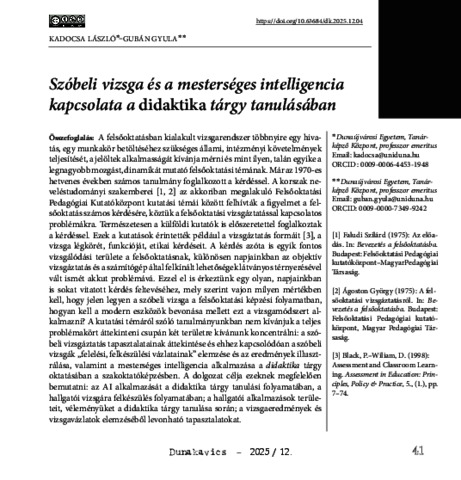 Kadocsa, László and Gubán, Gyula (2025) Szóbeli vizsga és a mesterséges intelligencia kapcsolata a didaktika tárgy tanulásában. DUNAKAVICS, 13 (12). pp. 41-56. ISSN 2064-5007