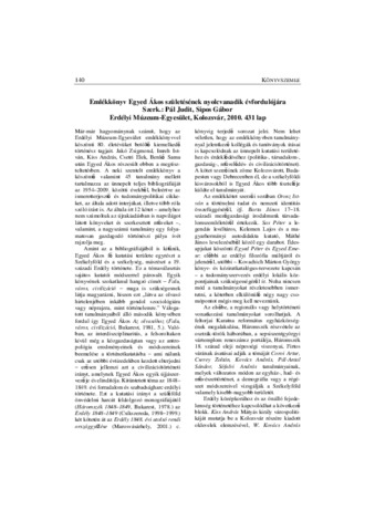 Restás, Attila (2012) Emlékkönyv Egyed Ákos születésének nyolcvanadik évfordulójára : Szerk.: Pál Judit, Sipos Gábor Erdélyi Múzeum-Egyesület, Kolozsvár, 2010. 431 lap. Debreceni Szemle, 20 (3-4). pp. 140-142. ISSN 1218-022X