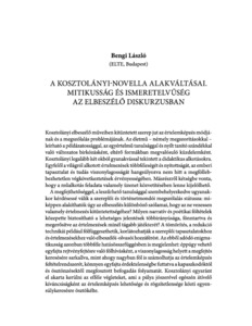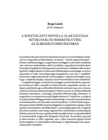 Bengi, László (2025) A Kosztolányi-novella alakváltásai : Mitikusság és ismeretelvűség az elbeszélő diszkurzusban. In: "...az elmondatlan s elmondhatatlan..." Tanulmányok Szitár Katalin emlékezetére. ELTE Eötvös József Collegium, Budapest, pp. 95-106. ISBN 9786155897764