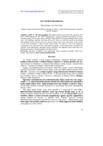 Németh, Endre and Fehér, Tibor (2025) Az ugor paradigma = The Ugor paradigm. ANTHROPOLOGIAI KÖZLEMÉNYEK, 66. pp. 35-51. ISSN 0003-5440