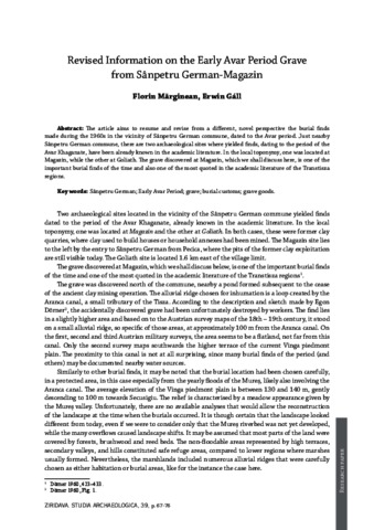 Mărginean, Florin and Gáll, Erwin (2025) Revised Information on the Early Avar Period Grave from Sânpetru German-Magazin. ZIRIDAVA : STUDIA ARCHAEOLOGICA, 39. pp. 67-76. ISSN 2392-8786