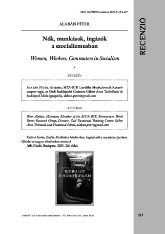 Alabán, Péter (2025) Nők, munkások, ingázók a szocializmusban = Women, Workers, Commuters in Socialism. COMITATUS: ÖNKORMÁNYZATI SZEMLE, 35 (254). pp. 127-132. ISSN 1215-315X
