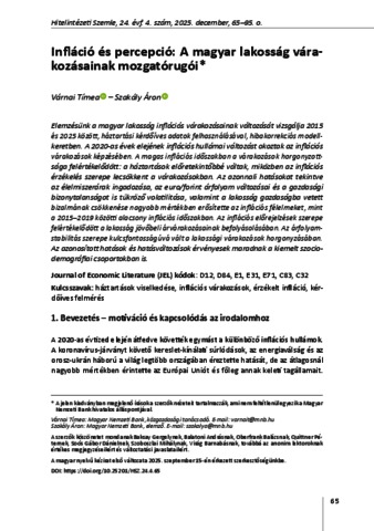 Várnai, Tímea and Szakály, Áron (2025) Infláció és percepció: A magyar lakosság várakozásainak mozgatórugói. HITELINTÉZETI SZEMLE, 24 (4). pp. 65-95. ISSN 1588-6883