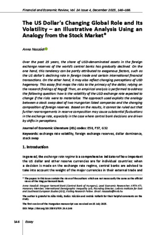 Naszódi, Anna (2025) The US Dollar’s Changing Global Role and Its Volatility – an Illustrative Analysis Using an Analogy from the Stock Market. FINANCIAL AND ECONOMIC REVIEW, 24 (4). pp. 146-166. ISSN 2415-9271