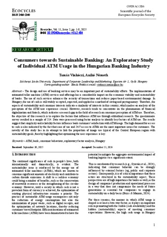 Vinkóczi, Tamás and Németh, Anikó (2025) Consumers towards Sustainable Banking: An Exploratory Study of Individual ATM Usage in the Hungarian Banking Industry. ECOCYCLES, 11 (2). pp. 1-8. ISSN 2416-2140