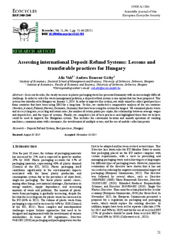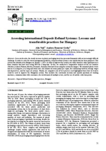 Vuk, Aliz and Bauerné Gáthy, Andrea (2025) Assessing international Deposit-Refund Systems: Lessons and transferable practices for Hungary. ECOCYCLES, 11 (2). pp. 51-66. ISSN 2416-2140