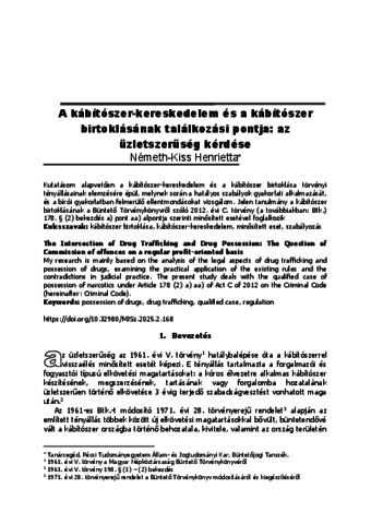Németh-Kiss, Henrietta (2025) A kábítószer-kereskedelem és a kábítószer birtoklásának találkozási pontja: az üzletszerűség kérdése = The Intersection of Drug Trafficking and Drug Possession: The Question of Commission of offences on a regular profit-oriented basis. MISKOLCI JOGI SZEMLE: A MISKOLCI EGYETEM ÁLLAM- ÉS JOGTUDOMÁNYI KARÁNAK FOLYÓIRATA, 20 (2). pp. 168-176. ISSN 1788-0386