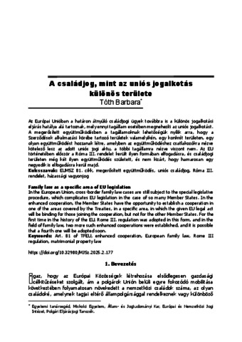 Tóth, Barbara (2025) A családjog mint az uniós jogalkotás különös területe = Family law as a specific area of EU legislation. MISKOLCI JOGI SZEMLE: A MISKOLCI EGYETEM ÁLLAM- ÉS JOGTUDOMÁNYI KARÁNAK FOLYÓIRATA, 20 (2). pp. 177-194. ISSN 1788-0386