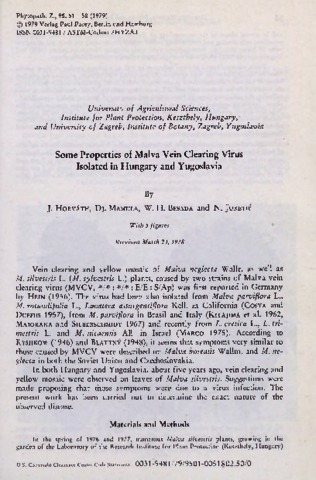 Horváth, József and Mamula, D and Besada, WH and Juretic, N (1979) Some Properties of Malva Vein Clearing Virus Isolated IN Hungary And Yugoslavia. PHYTOPATHOLOGISCHE ZEITSCHRIFT, 95 (1). pp. 51-58. ISSN 0031-9481