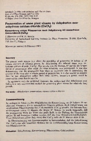 Horváth, József and Besada, WH (1980) Preservation of Some Plant-viruses BY Dehydration Over Anhydrous Calcium-chloride (cacl2). ZEITSCHRIFT FÜR PFLANZENKRANKHEITEN UND PFLANZENSCHUTZ, 87 (8). pp. 463-472. ISSN 0340-8159