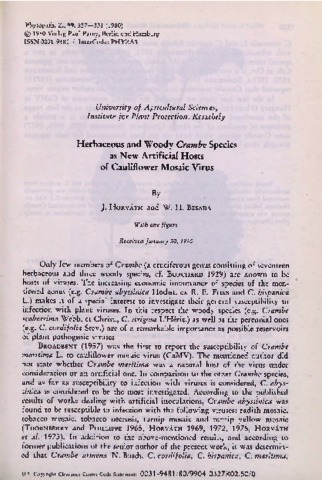 Horváth, József and Besada, WH (1980) Herbaceous And Woody Crambe Species AS New Artificial Hosts of Cauliflower Mosaic-virus. PHYTOPATHOLOGISCHE ZEITSCHRIFT, 99 (4). pp. 327-331. ISSN 0031-9481