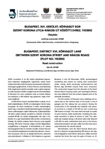 Gyenes, Gábor (2020) Budapest, XVI. kerület, Körvasút sor (Szent Korona utca–Rákosi út között) (hrsz. 110390) : Útépítés = Budapest, District XVI, Körvasút Lane (Between Szent Korona Street and Rákosi Road) (Plot No. 110390) : Road construction. ARCHEOBUDAPEST (74). ISSN 3094-1857