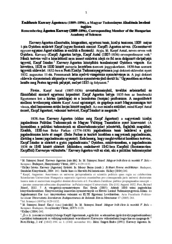 | Additional Information: | https://mta.hu/data/dokumentumok/Karvasy_Ágoston_KOI_MTA_2025.pdf Akadémikusok emlékezete, illetve Jubileumi megemlékezések néven is ismert a közlés helye |