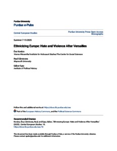 Kovács, Éva Judit and Cârstocea, Raul and Egry, Gábor, eds. (2025) Ethnicizing Europe : Hate and Violence After Versailles. Central European studies . Purdue University Press, West Lafayette (IN). ISBN 9781626711211; 9781626711204; 9781626711228