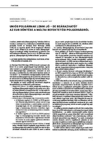 Chronowski, Nóra (2025) Uniós polgárnak lenni jó - de beárazható? Az EUB döntése a máltai befektetési polgárságról. KÖZJOGI SZEMLE, 18 (2). pp. 74-81. ISSN 1789-6991