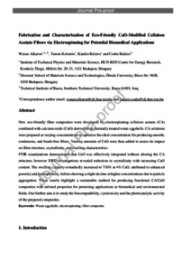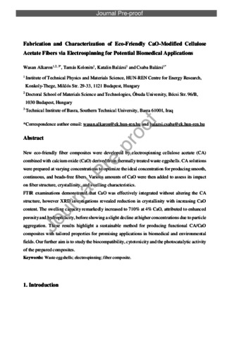 Alkaron, Wasan and Kolonits, Tamás and Balázsi, Katalin and Balázsi, Csaba (2026) Fabrication and Characterization of Eco-Friendly CaO-Modified Cellulose Acetate Fibers via Electrospinning for Potential Biomedical Applications. Open Ceramics, in pre. No. 100906. ISSN 2666-5395
