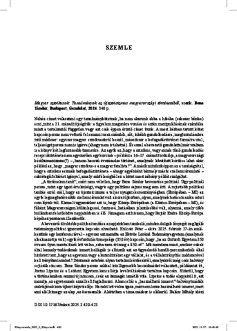Monok, István (2025) Magyar sztoikusok: Tanulmányok az újsztoicizmus magyarországi történetéből, szerk. Bene Sándor, Budapest, Gondolat, 2024. MAGYAR KÖNYVSZEMLE, 141 (3). pp. 420-423. ISSN 0025-0171