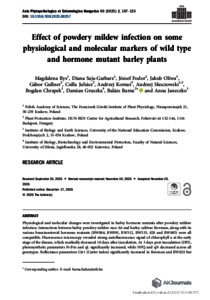 Rys, Magdalena and Saja-Garbarz, Diana and Fodor, József and Oliwa, Jakub and Gullner, Gábor and Juhász, Csilla and Kornaś, Andrzej and Skoczowski, Andrzej and Chrapek, Bogdan and Gruszka, Damian and Barna, Balázs and Janeczko, Anna (2025) Effect of powdery mildew infection on some physiological and molecular markers of wild type and hormone mutant barley plants. ACTA PHYTOPATHOLOGICA ET ENTOMOLOGICA HUNGARICA, 60 (2). pp. 107-125. ISSN 0238-1249