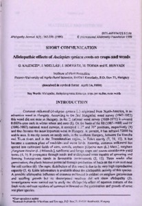 Kazinczi, Gabriella and Mikulás, József and Horváth, József and Torma, M and Hunyadi, K (1999) Allelopathic effects of Asclepias syriaca roots on crops and weeds. ALLELOPATHY JOURNAL, 6 (2). pp. 267-270. ISSN 0971-4693