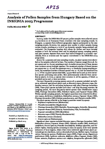 Rőzséné-Büki, Etelka (2025) Analysis of Pollen Samples from Hungary Based on the INSIGNIA 2023 Programme. APIS, 2 (1). pp. 5-30. ISSN 3058-0382