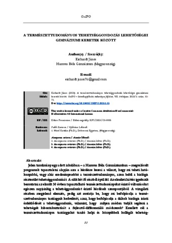 Eichardt, János (2025) A természettudományos tehetséggondozás lehetőségei gimnáziumi keretek között = Opportunities for talent development in the natural sciences within the framework of secondary grammar schools. OXIPO : INTERDISZCIPLINÁRIS E-FOLYÓIRAT, 7 (3). pp. 53-73. ISSN 2676-8771