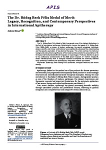 Bónai, András (2025) The Dr. Bódog Beck Félix Medal of Merit: Legacy, Recognition, and Contemporary Perspectives in International Apitherapy. APIS, 2 (2). pp. 5-8. ISSN 3058-0382