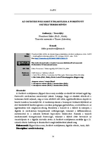 | Uncontrolled Keywords: | flipped classroom, digital education, teacher, student, flipped classroom, fordított osztályterem, digitális oktatás, tanár, diák |