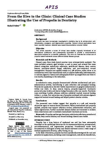 Felitti, Rafael (2025) From the Hive to the Clinic: Clinical Case Studies Illustrating the Use of Propolis in Dentistry. APIS, 2 (2). pp. 36-49. ISSN 3058-0382
