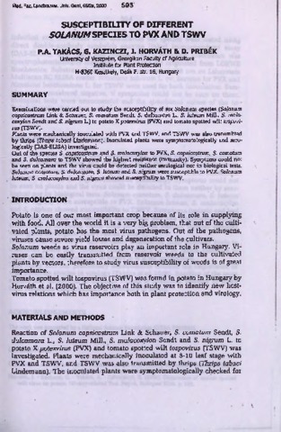 Takács, András Péter and Kazinczi, Gabriella and Horváth, József and Pribék, Dalma (2000) Susceptibility of different Solanum species to two PVX AND TSWV. In: 52nd International Symposium on Crop Protection, Gent. UNSPECIFIED, Belgium.