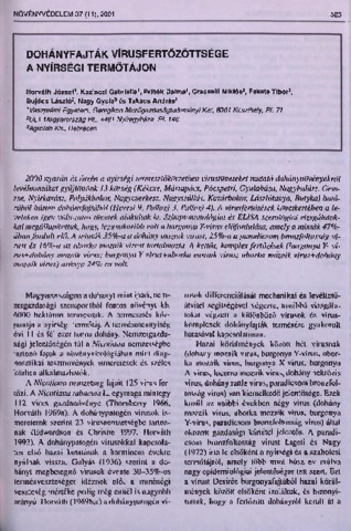 Horváth, József and Kazinczi, Gabriella and Pribék, Dalma and Grasselli, M. and Fekete, T. and Bujdos, L. and Nagy, GY. and Takács, András Péter (2001) Dohányfajták vírusfertőzöttsége a nyírségi termőtájon. NÖVÉNYVÉDELEM, 37. pp. 525-529. ISSN 0133-0829