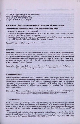 Kazinczi, Gabriella and Horváth, József and Lesemann, DE (2002) Perennial plants as natural hosts of three viruses. ZEITSCHRIFT FÜR PFLANZENKRANKHEITEN UND PFLANZENSCHUTZ, 109 (3). pp. 301-310. ISSN 0340-8159