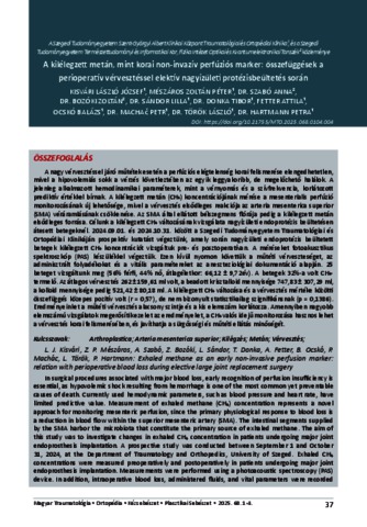 Kisvári, László József and Mészáros, Zoltán Péter and Szabó, Anna and Bozóki, Zoltán and Sándor, Lilla and Donka, Tibor and Fetter, Attila and Ocskó, Balázs and Machač, Petr and Török, László and Hartmann, Petra (2025) A kilélegzett metán, mint korai non-invazív perfúziós marker: összefüggések a perioperatív vérvesztéssel elektív nagyízületi protézisbeültetés során. MAGYAR TRAUMATOLÓGIA ORTOPÉDIA KÉZSEBÉSZET PLASZTIKAI SEBÉSZET, 68 (1-4). pp. 37-44. ISSN 1217-3231