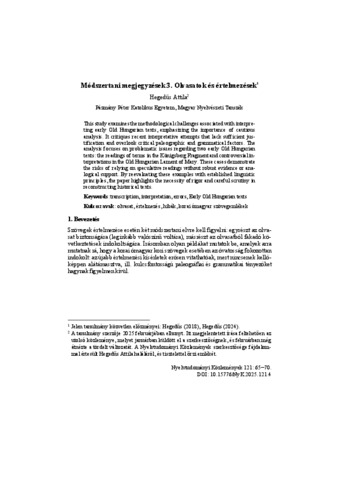 Hegedűs, Attila (2025) Módszertani megjegyzések 3. Olvasatok és értelmezések. NYELVTUDOMÁNYI KÖZLEMÉNYEK, 121. pp. 65-70. ISSN 0029-6791