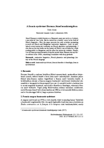 Sőrés, Anna (2025) A francia nyelvészet Herman József munkásságában. NYELVTUDOMÁNYI KÖZLEMÉNYEK, 121. pp. 211-217. ISSN 0029-6791