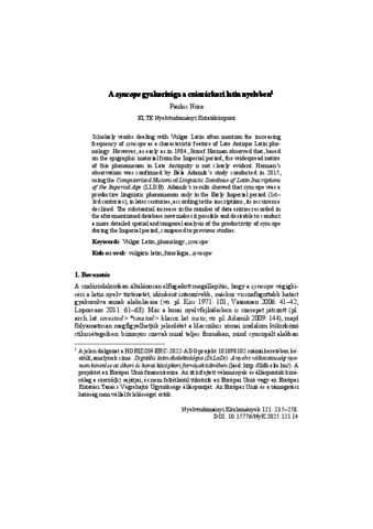 Paulus, Nóra (2025) A syncope gyakorisága a császárkori latin nyelvben. NYELVTUDOMÁNYI KÖZLEMÉNYEK, 121. pp. 235-258. ISSN 0029-6791