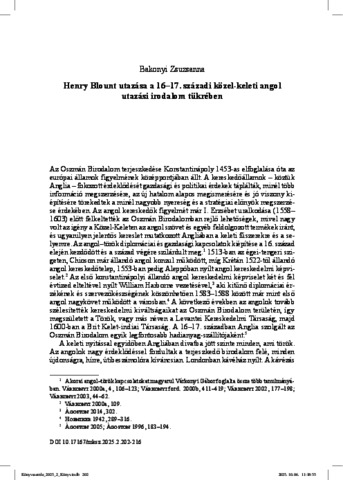 Bakonyi, Zsuzsanna (2025) Henry Blount utazása a 16–17. századi közel-keleti angol utazási irodalom tükrében. MAGYAR KÖNYVSZEMLE, 141 (2). pp. 202-216. ISSN 0025-0171